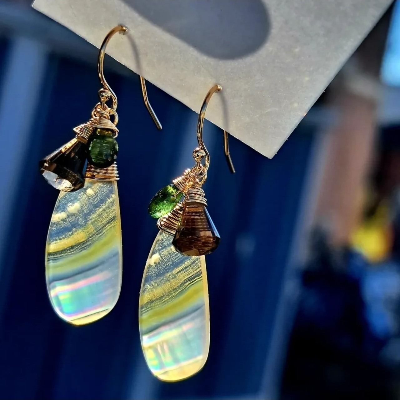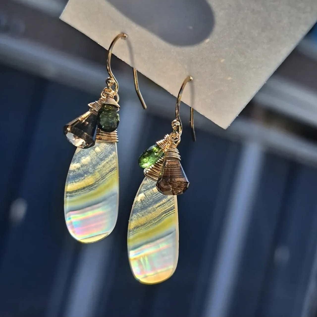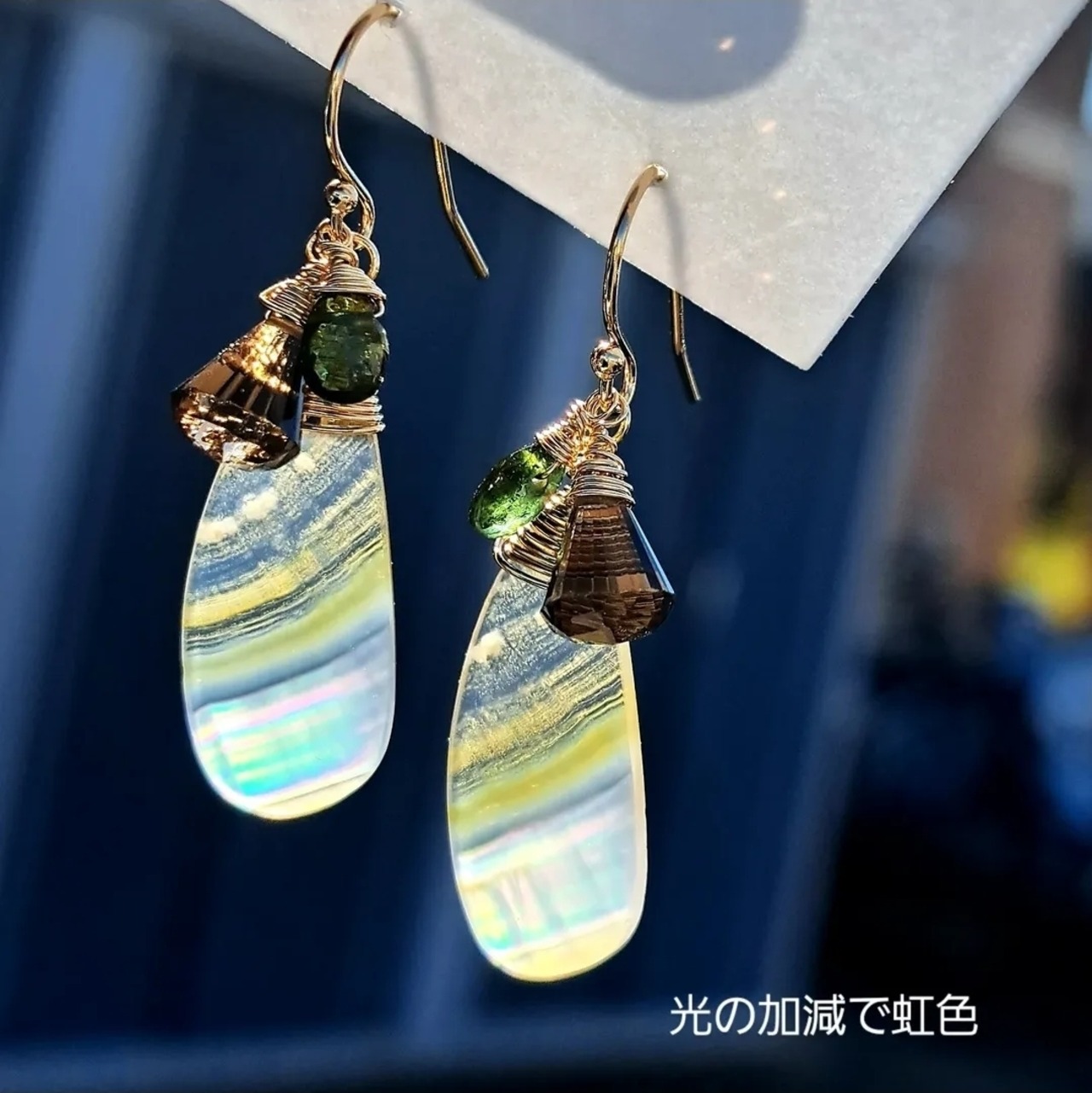 シャンデリアカットのスモーキークォーツとグリーントルマリンが似合う、可愛いアゲート。