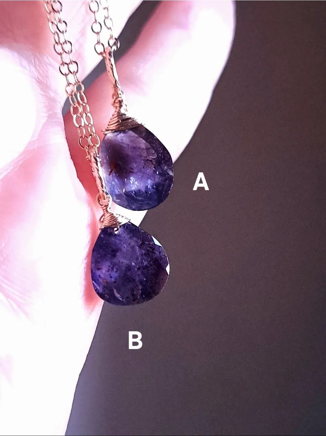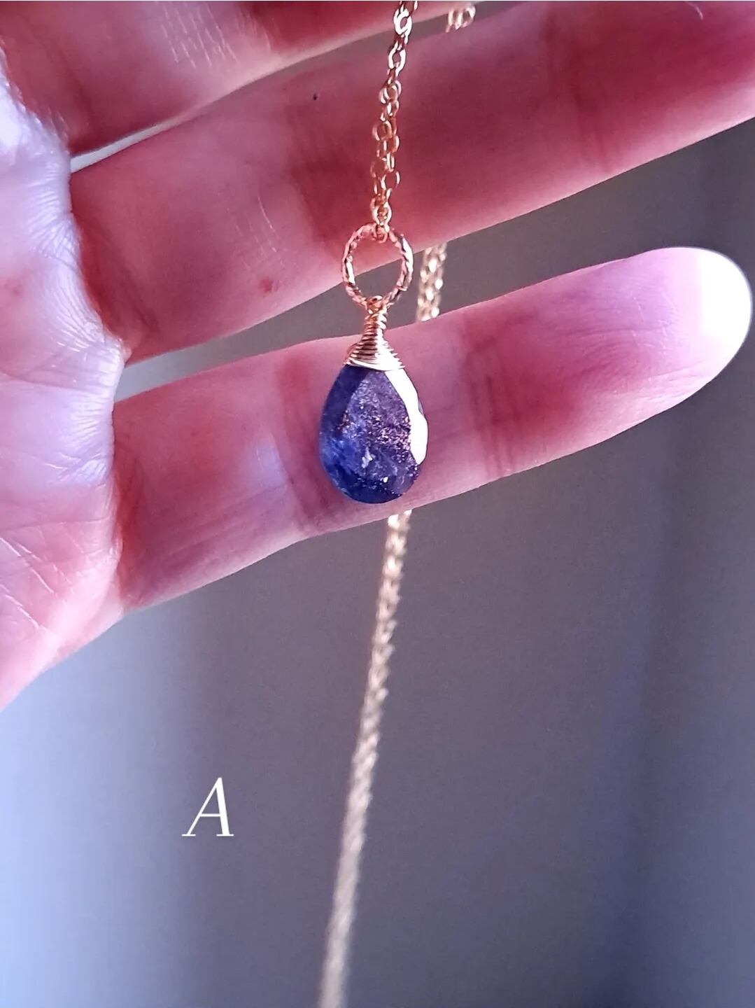 A…すっきりペアシェイプ。表面からのキラキラが目立つ、アイオライトサンストーンらしさが魅力的。