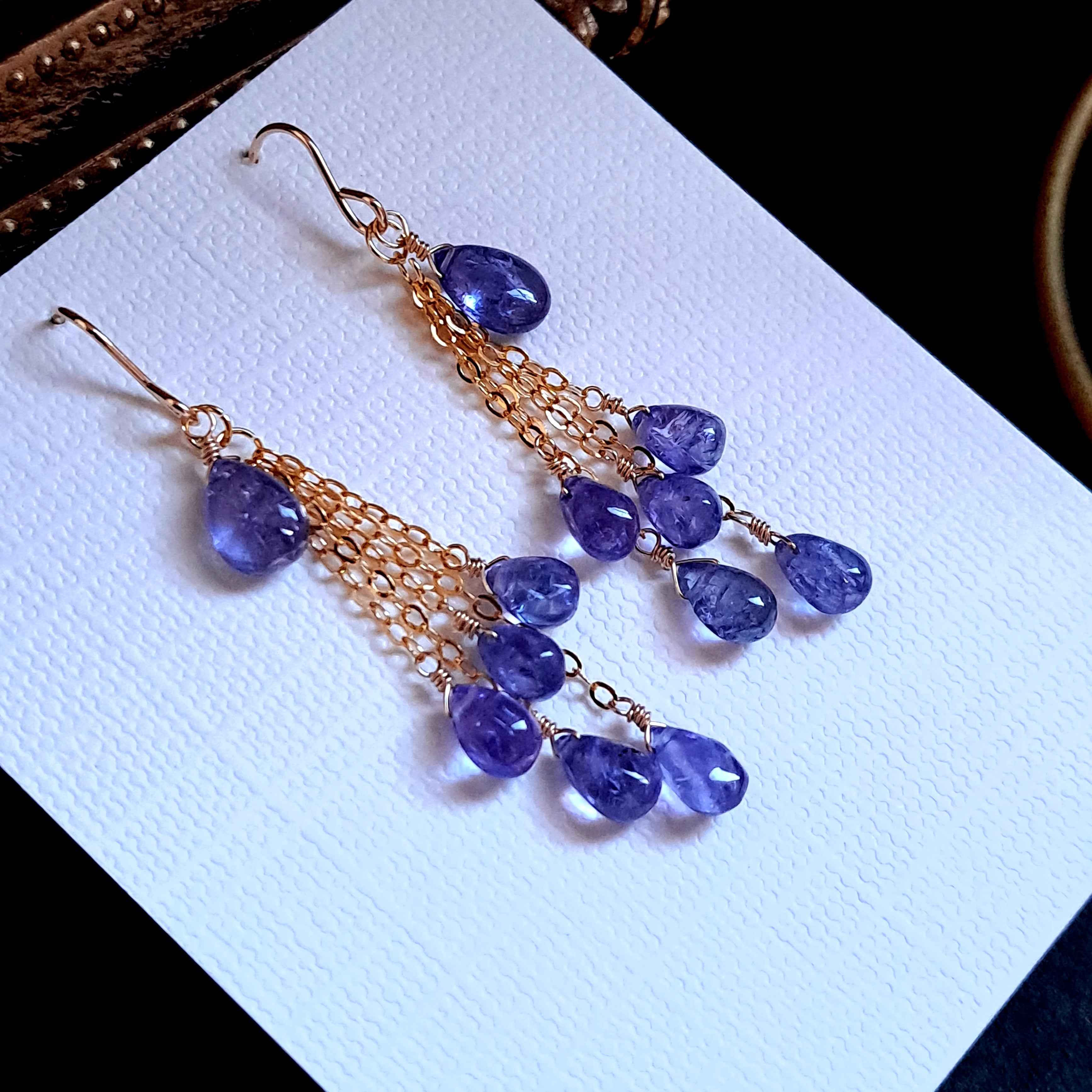 タンザナイトスムースドロップ、ペアシェイプ合わせて12石を贅沢に使用しました。