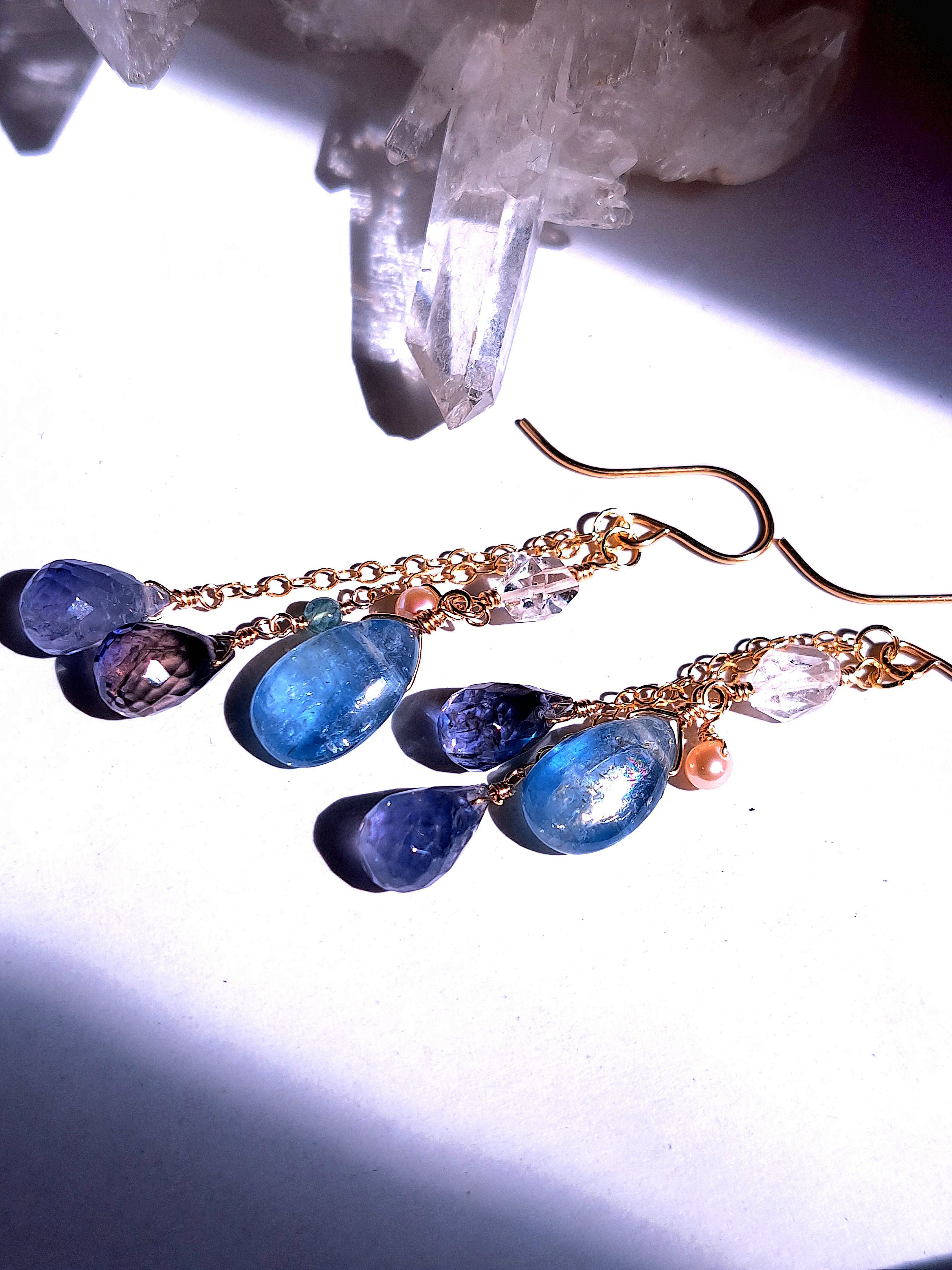 アイオライトは濃淡使用し、片方だけ隠れトルマリン。