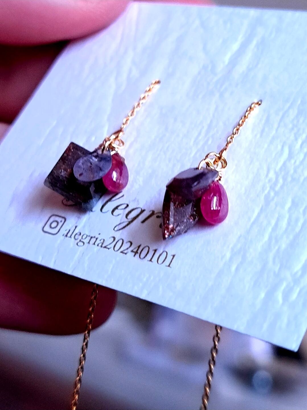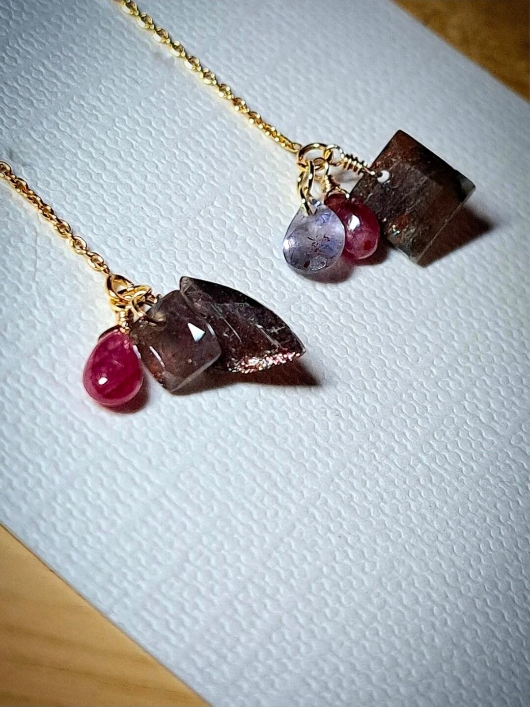 ファセットカットの裏面も内包物や色を楽しめるので、アメリカンピアスの先で揺れる様をお楽しみください。